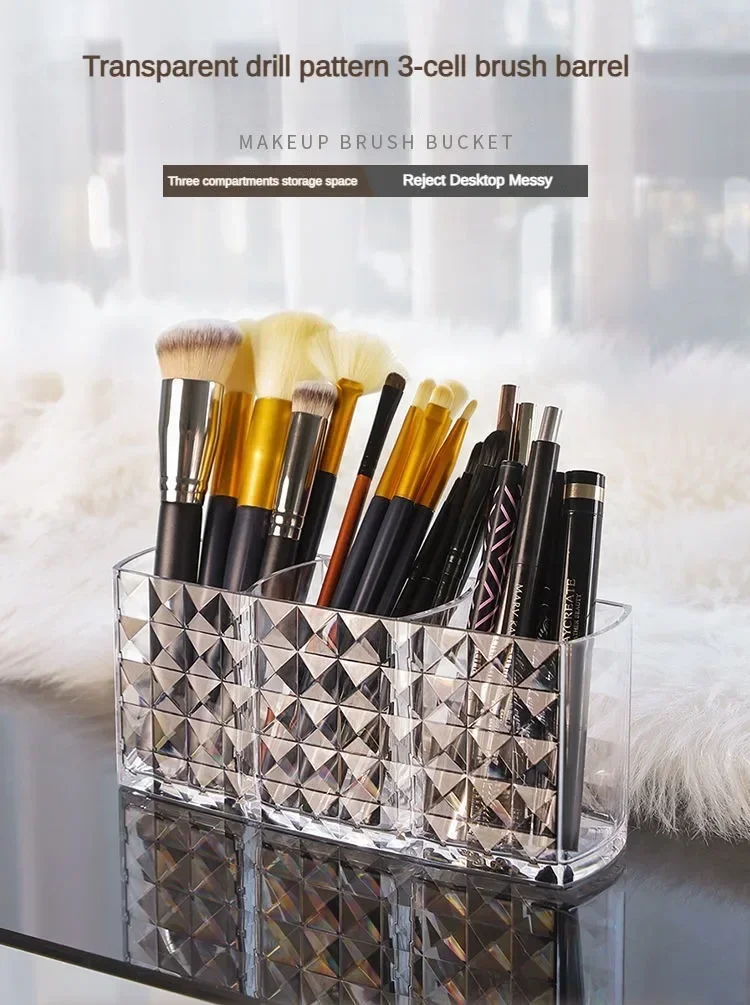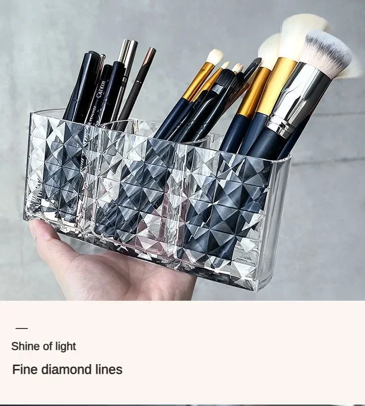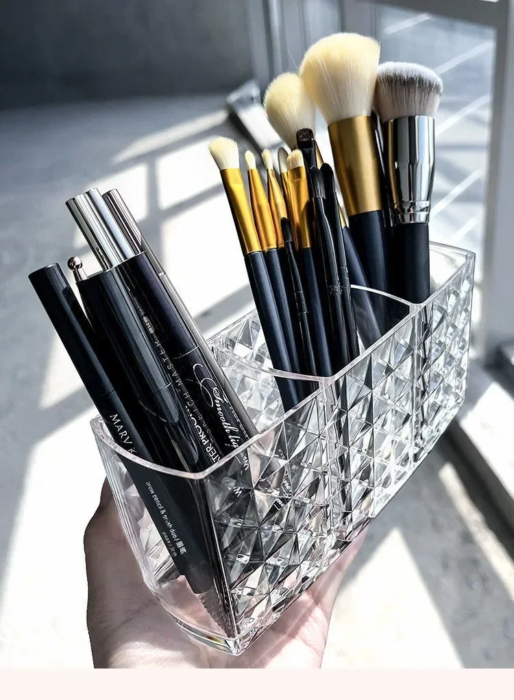 Not only can it store your makeup brushes and other cosmetics, but it can also be used for jewelry or other small items. Made with high-quality, transparent material, you can easily see and reach for the items you need.