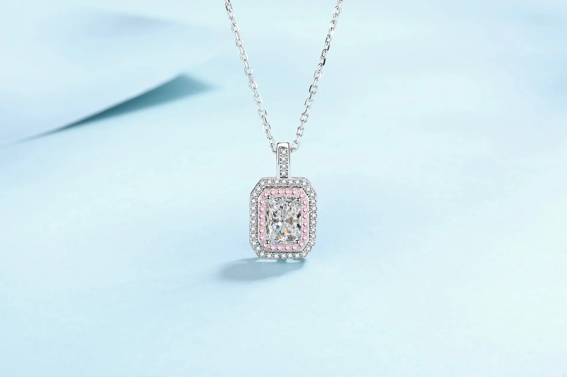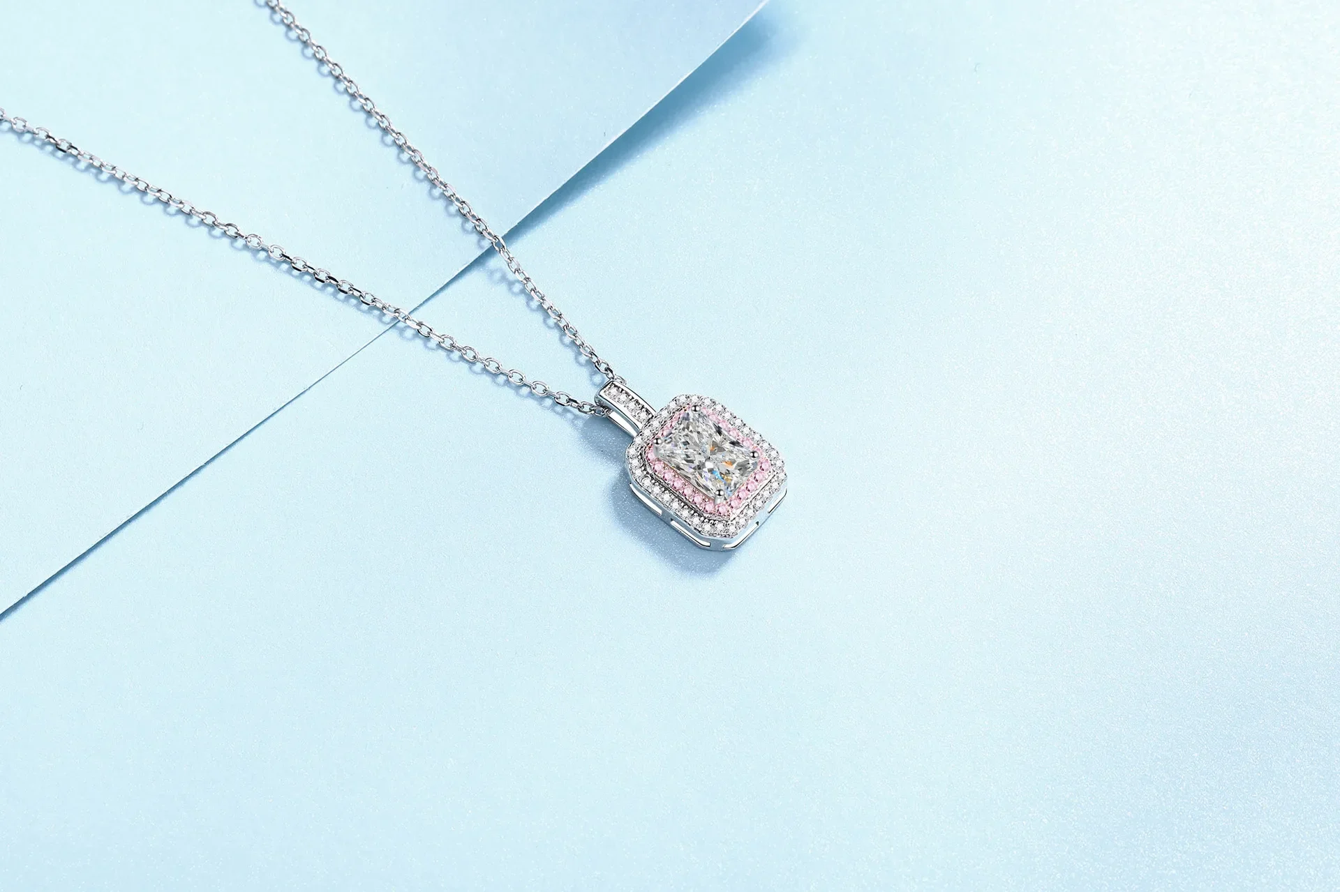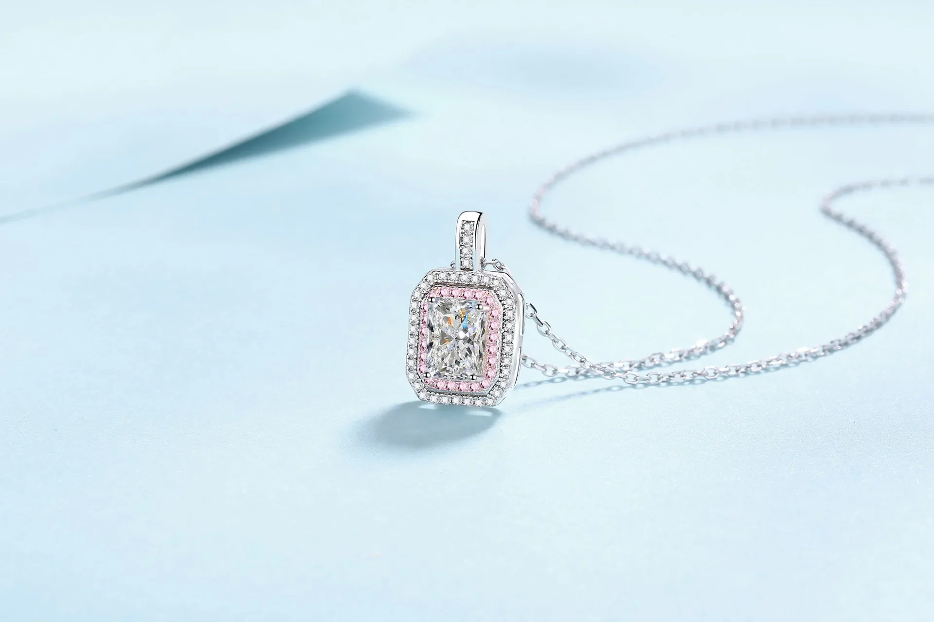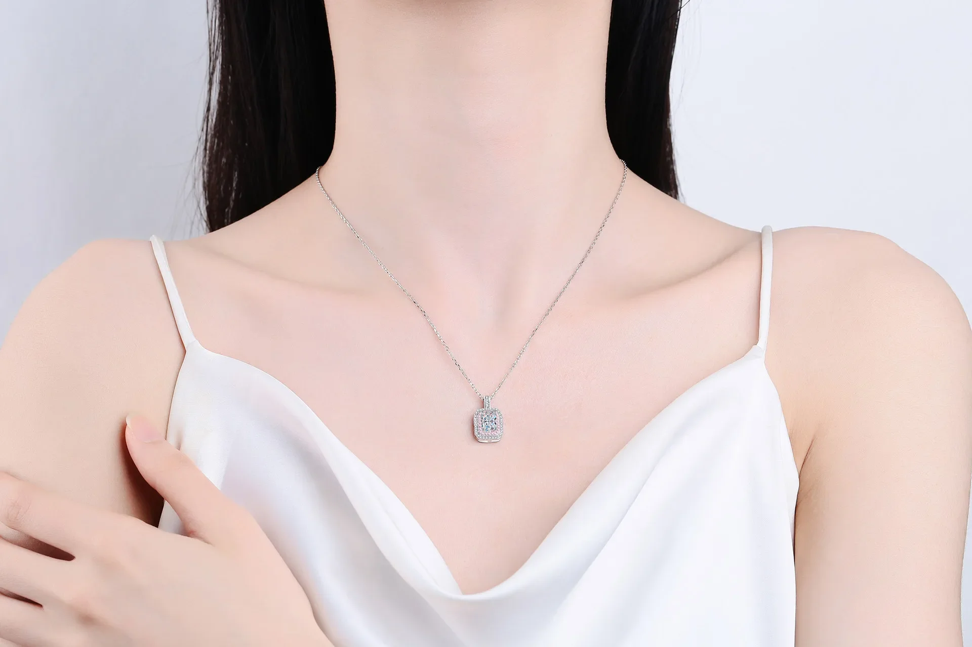 18K White Gold Platinum Pt950 1 Carat Moissanite Necklace Pendants for Women Bag Square Sugar Collar Simple Chain Fine Jewelry