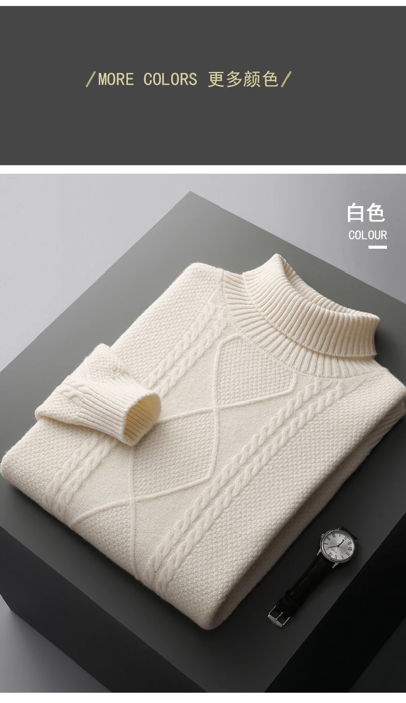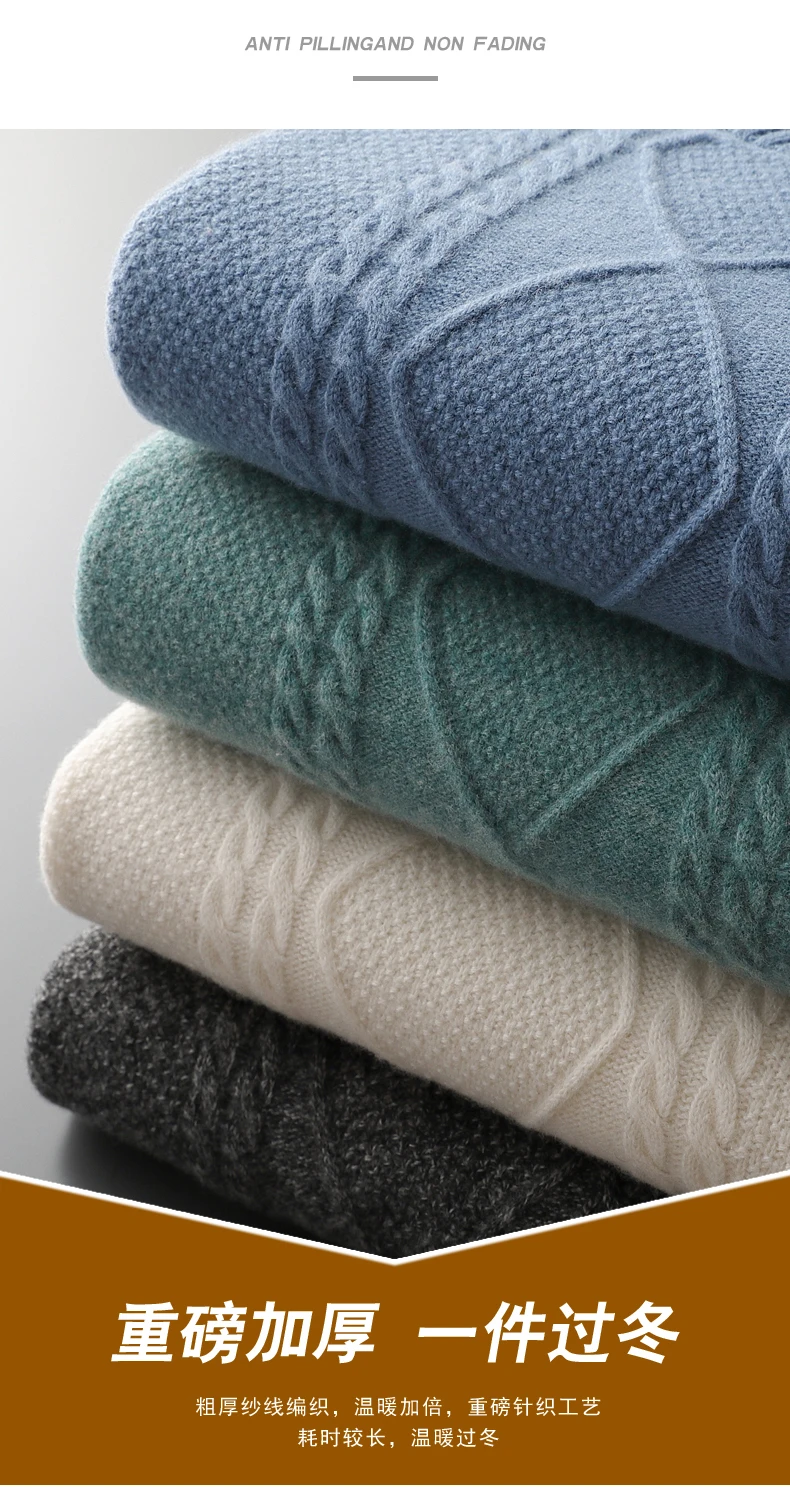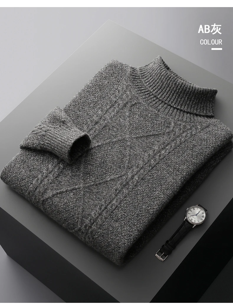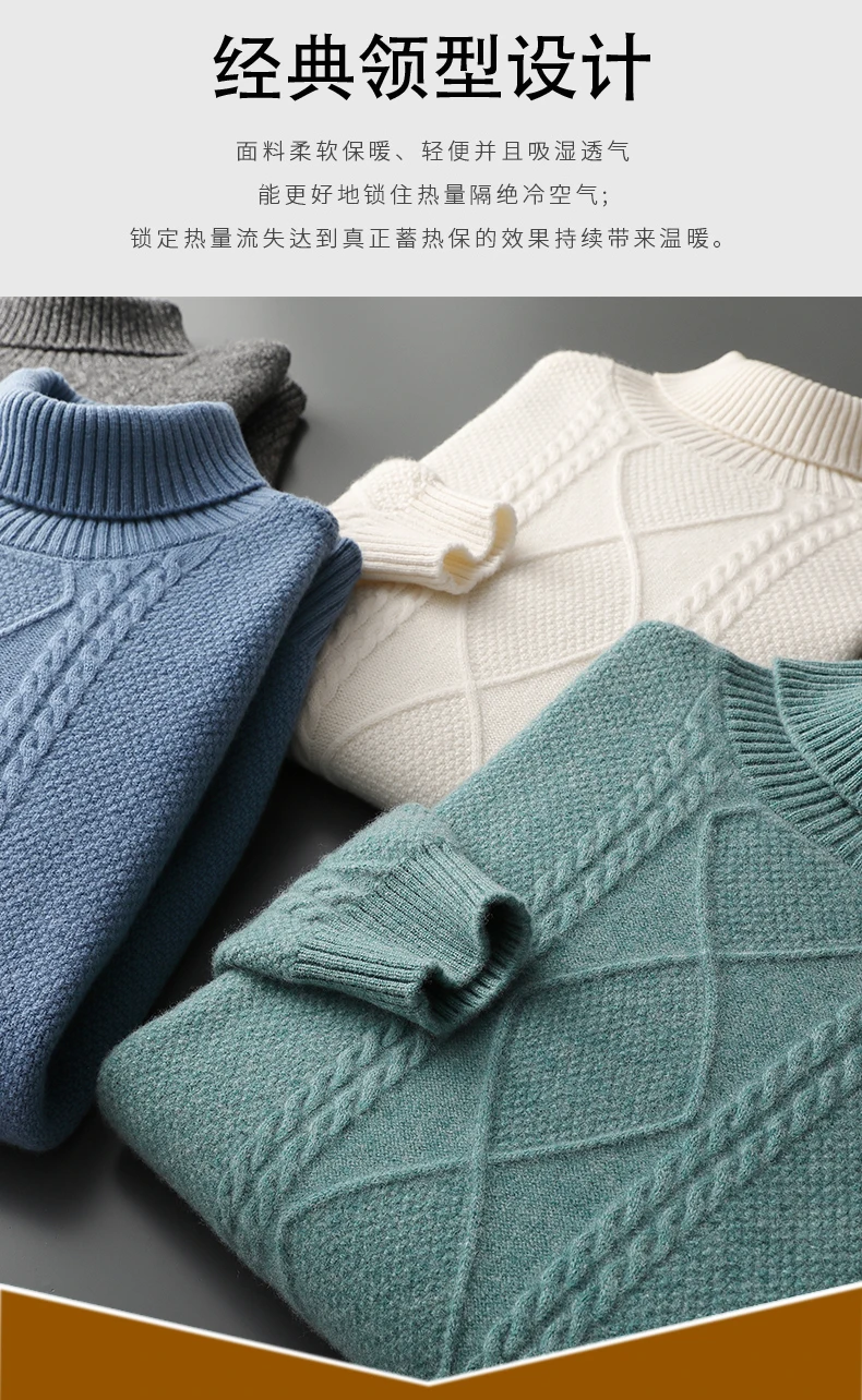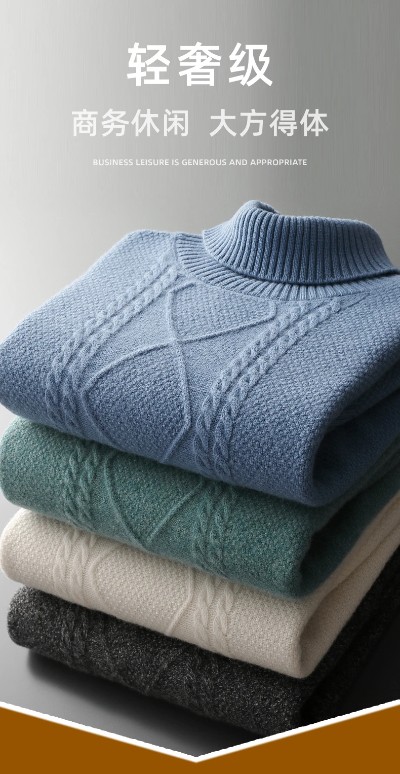 Autumn and winter new 100% wool cashmere sweater men's high neck thick jacquard pullover loose plus size shirt casual warm coat