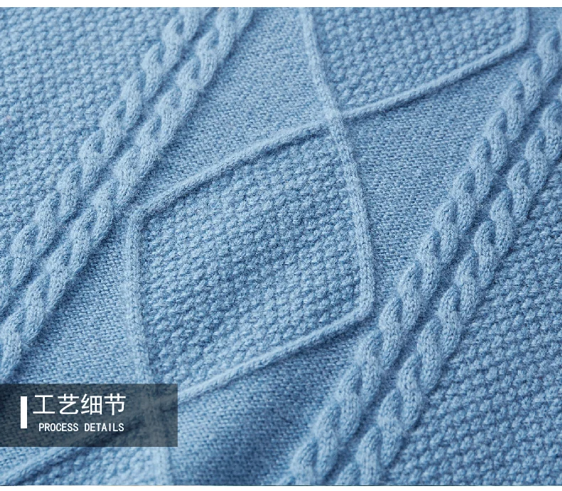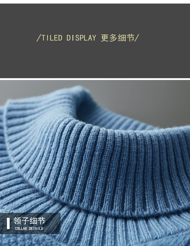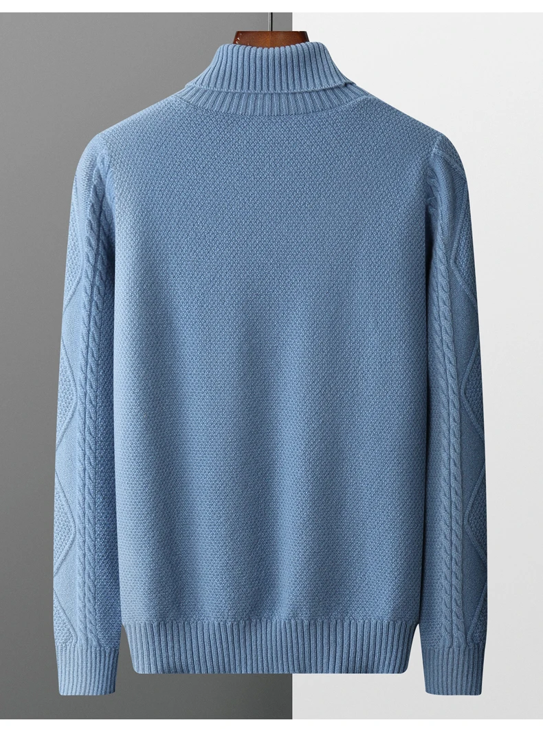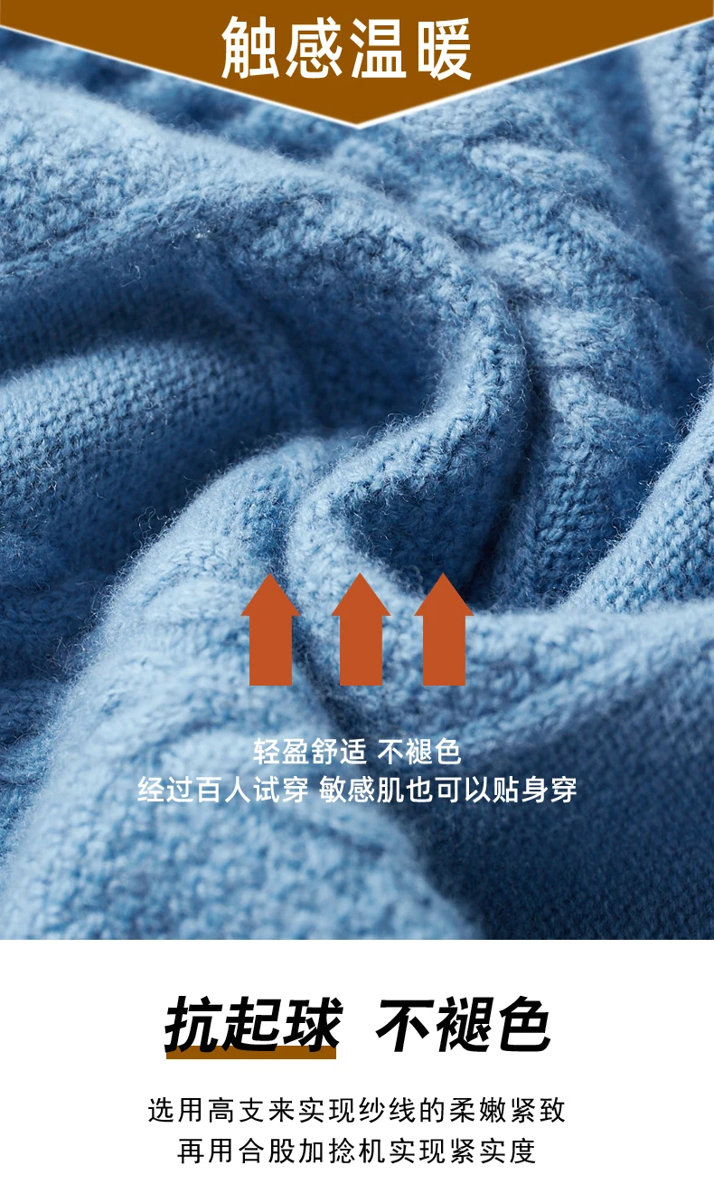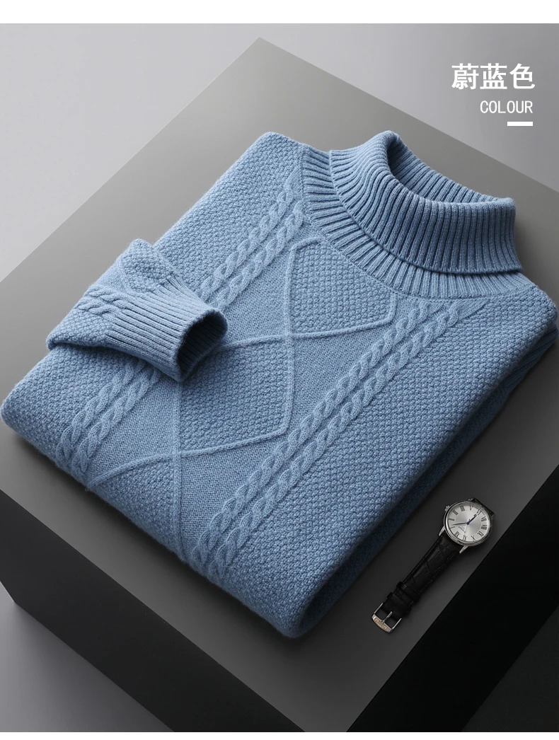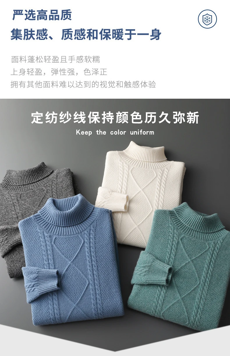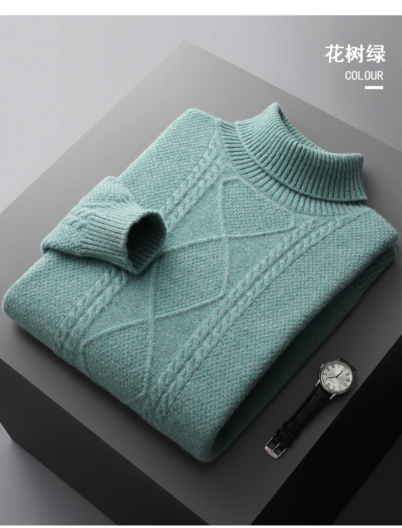 Autumn and winter new 100% wool cashmere sweater men's high neck thick jacquard pullover loose plus size shirt casual warm coat