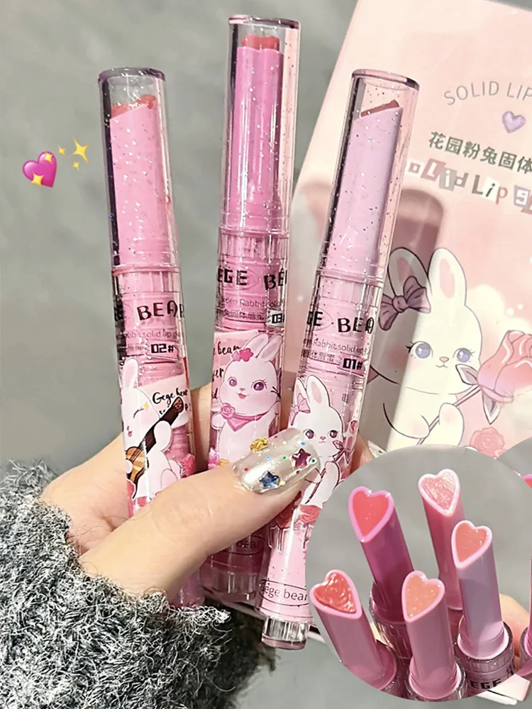 Gege Bear Garden Pink Rabbit Solid Lip Gloss Moisturizing Watery Colored Lip Balm Long-lasting and Tender Lip Balm