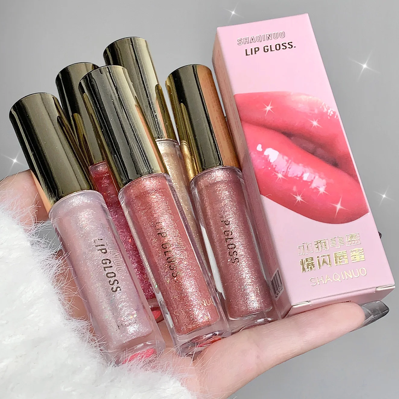 Glitter Liquid Lipstick Shimmer Metallic Clear Mirror Lip Gloss Plumping Oil Moisture Shine Lip Tint Sparkling Diamond Lip Oil