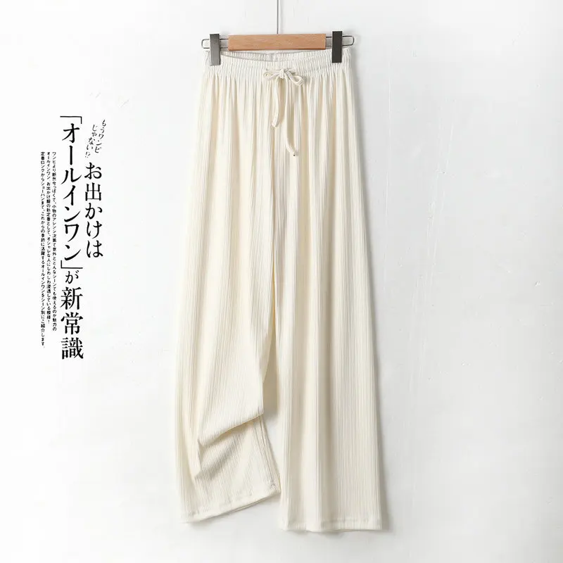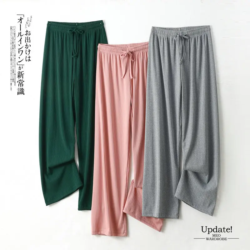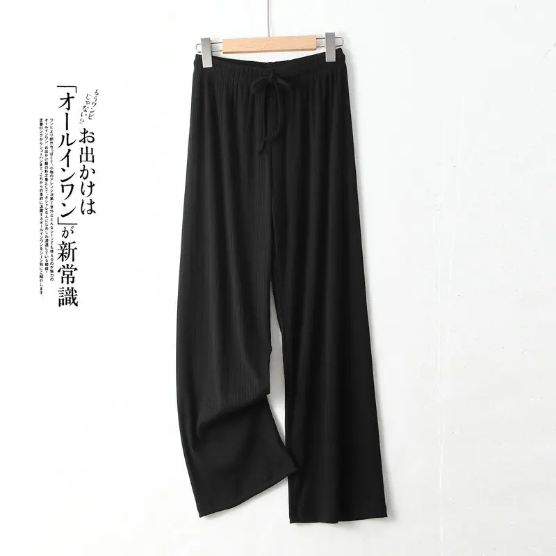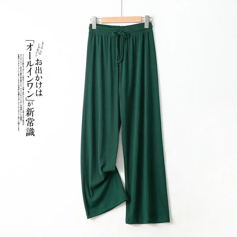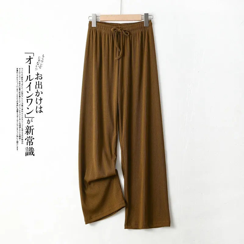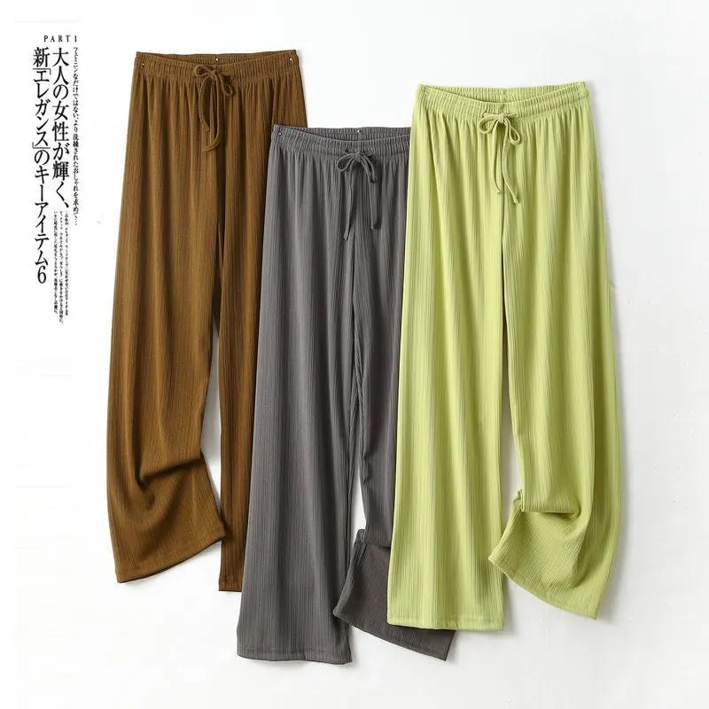 Pantalones De Mujer New Ice Silk Pajamas Pant For Women Nightwear Spring Summer Wide Leg Pants Casual Sleepwear Home Trousers