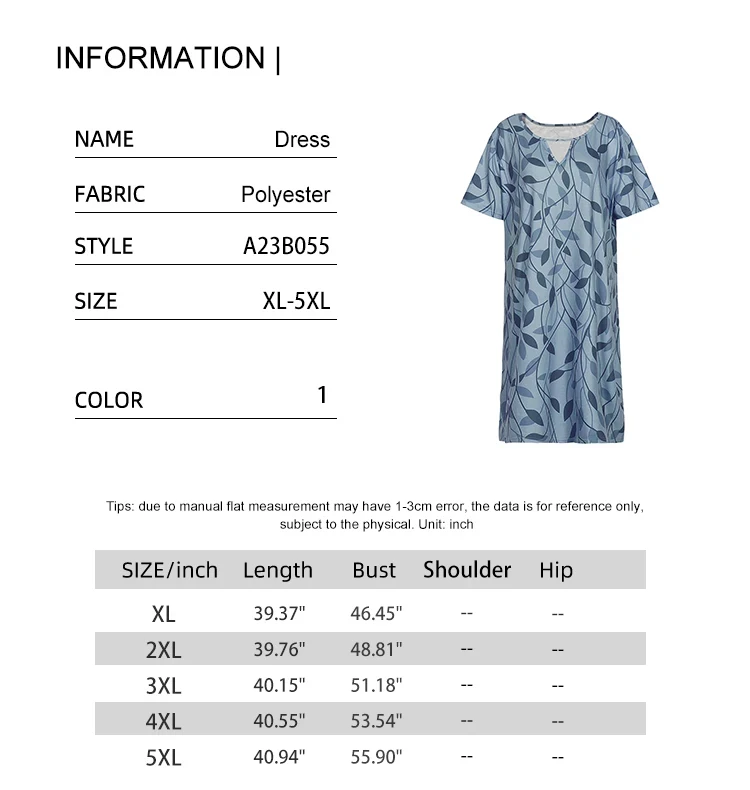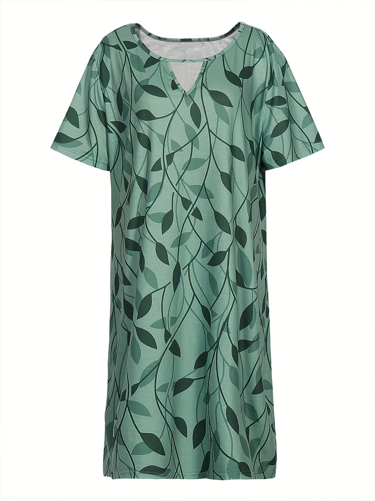 Plus Size 2024 Summer New Women's V-Neck Printed Pattern Dress Loose Pullover Dresses