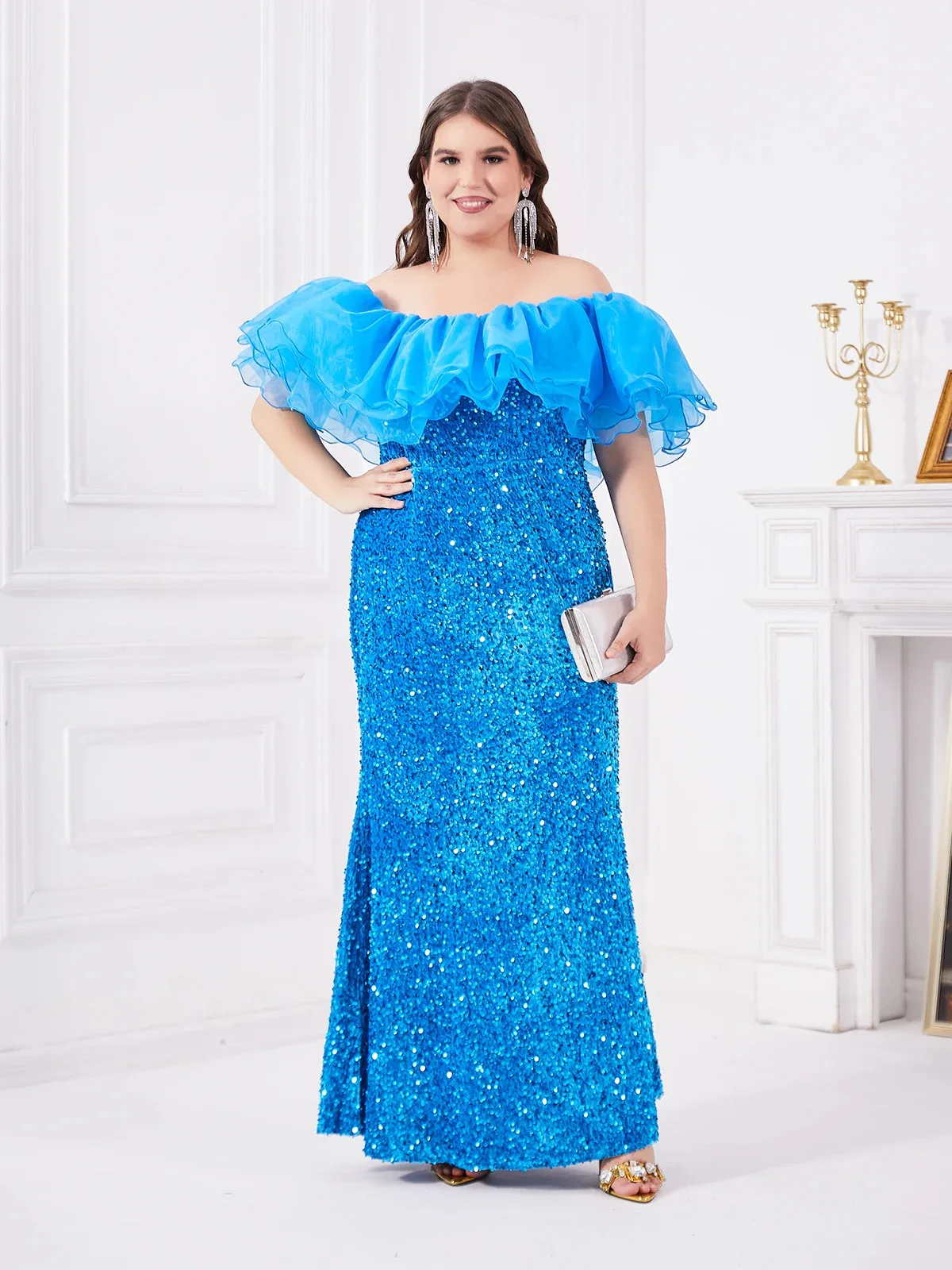 Plus Size Party Dress New Women Sexy Sequin Tassel Elegant Summer Dresses Fashion Large Lady Solid Color Evening Wedding Dresses