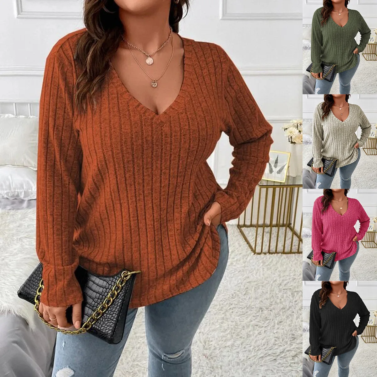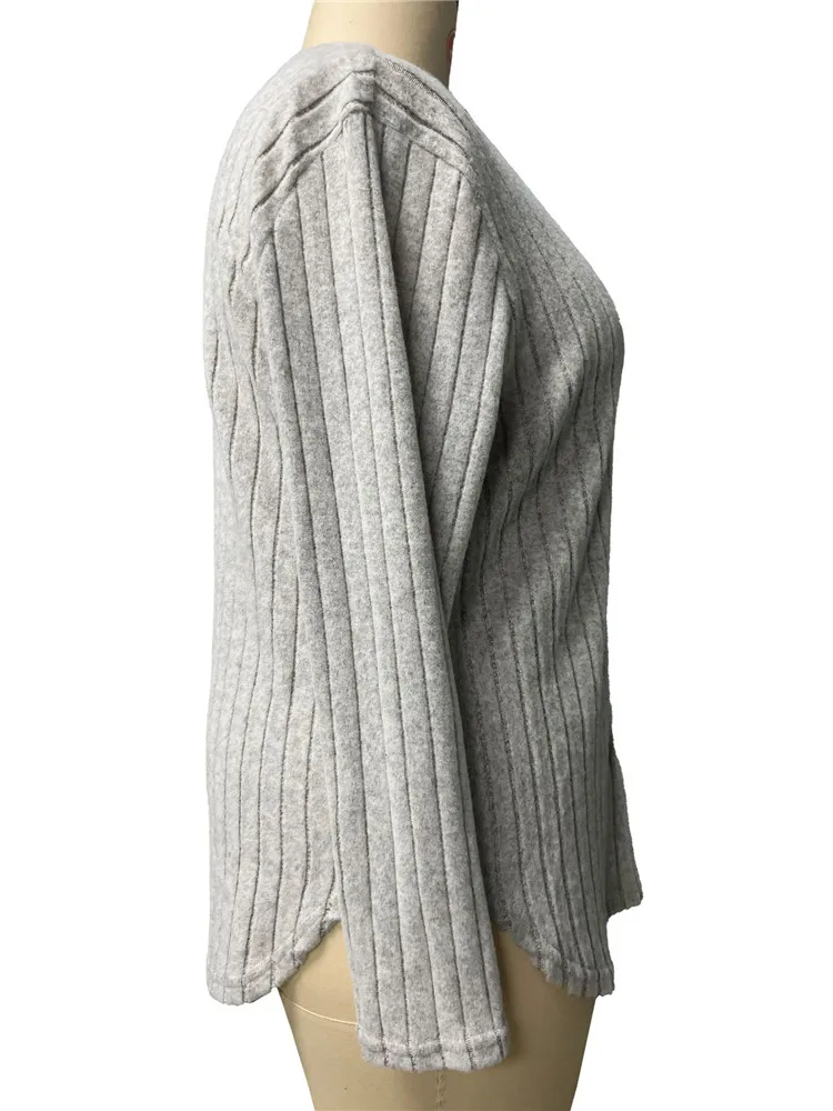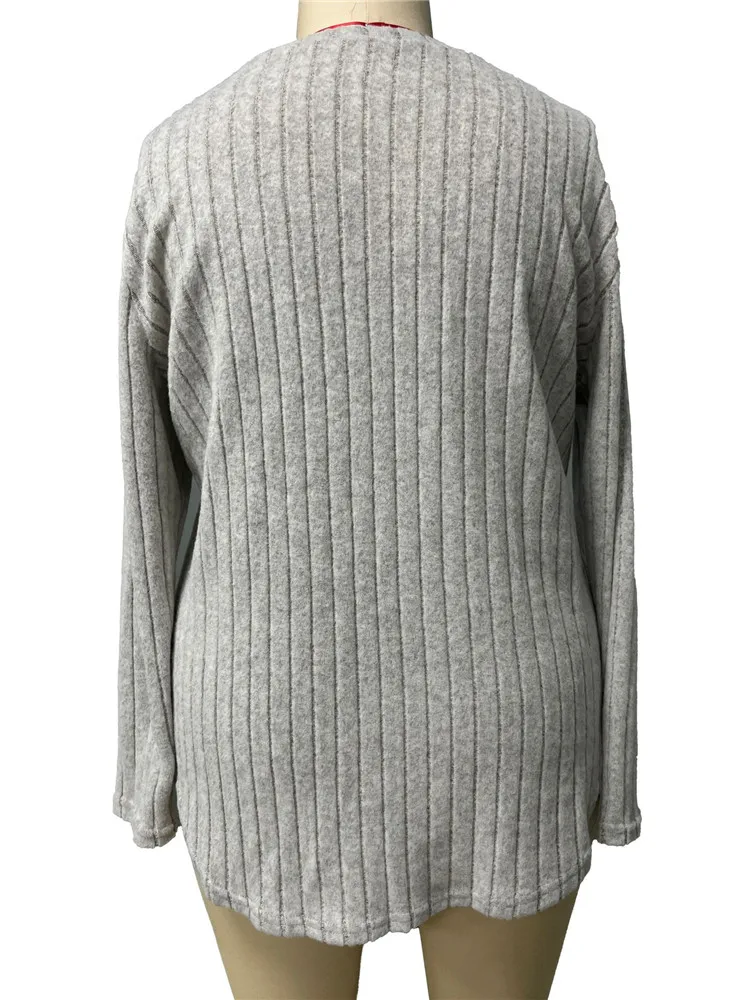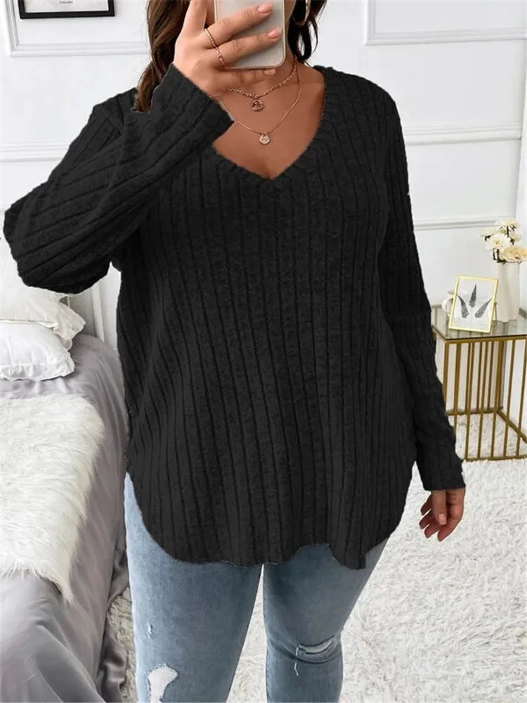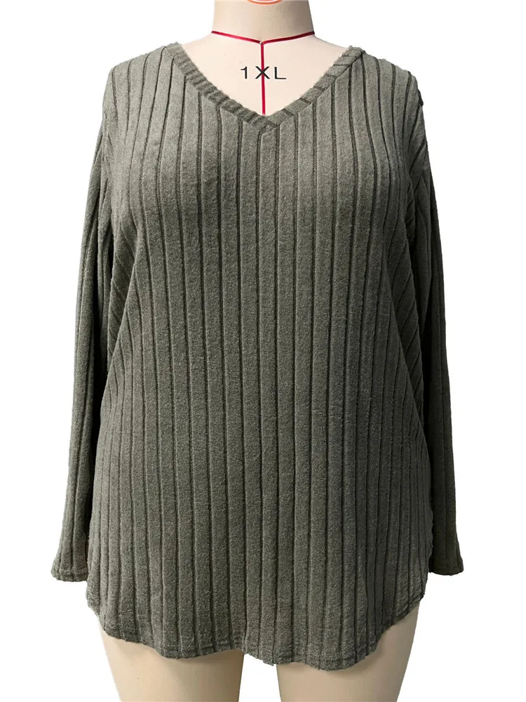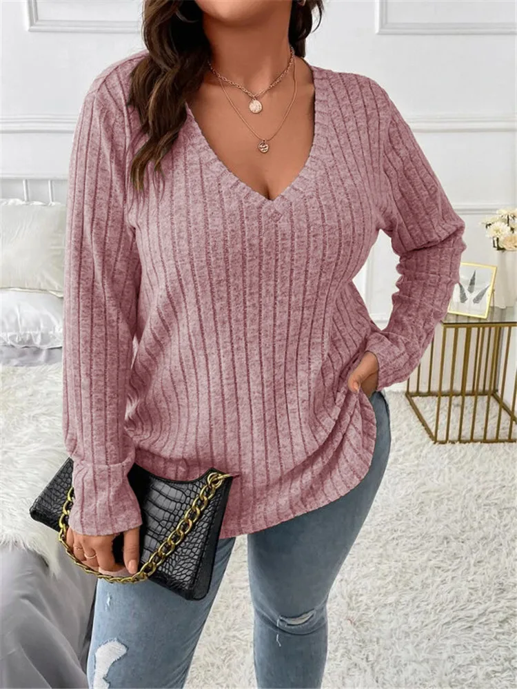 Women's Plus Size Clothing Long Sleeve T-Shirt Casual Fashion V Neck Striped Knitted Tops Spring Ladies Solid Loose T Shirts 5XL